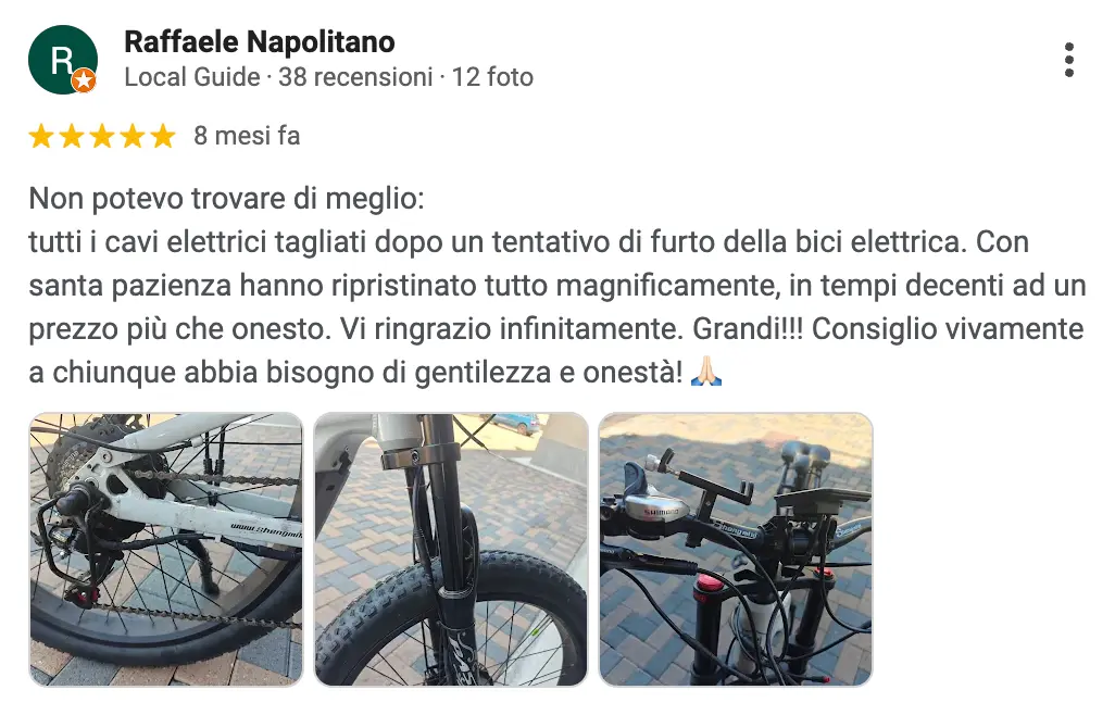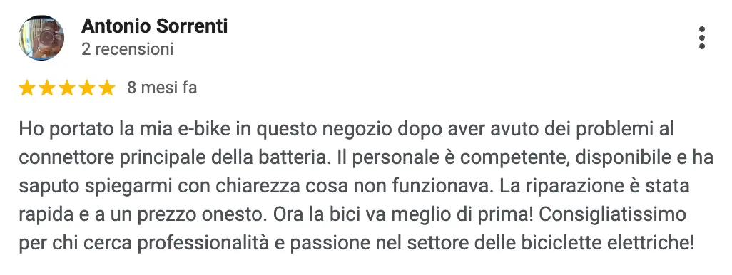 Riparazioni biciclette elettriche o bici muscolari, rigererazione di batterie al litio, vendita bici ex-noleggio e servizio di officina.